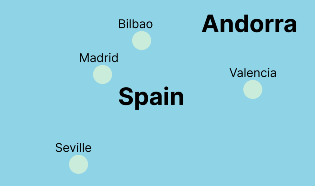 The closest to what we’re doing with the process diagram is shown in the following image. While we display some of the most relevant elements of Spain, we completely lose the context—there’s no abstraction or visual hint to help users understand the overall structure of the country.